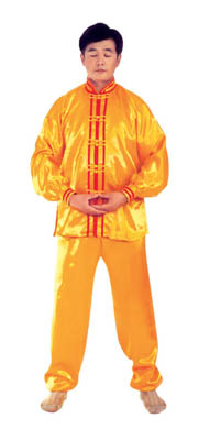 Trước lúc luyện công ý tưởng một chút rằng tự mình [như] là hai thùng rỗng rất cao lớn, sừng sững giữa trời đất, cao lớn không gì sánh được[16]. Khí bên trong [thân] thể thuận theo tay mà [chuyển] động lên xuống, xung lên khỏi đỉnh đầu, trực tiếp tới cực nơi cao nhất của vũ trụ; khí xung xuống sẽ qua từng chân mà xung ra, xung tới cực nơi thấp nhất của vũ trụ. Sau đó khí theo tay mà [chuyển] động, từ hai cực mà quay về trong [thân] thể, rồi lại xuất ra theo hướng ngược lại, lặp lại như thế chín lần. Khi xung quán tới lần thứ chín, thì tay trái (nữ tay phải) ở cực trên mà đợi tay phải (nữ tay trái) đưa lên. Sau đó [hai tay] đồng thời quay về hạ xuống quán nhập vào chỗ cực nơi thấp, [rồi lại] qua thân thể mà xung quán lên, sau khi lặp lại chín lần thì thu khí trở về. Sau khi thu trở lại, thì ở chỗ bụng dưới mà xoay chuyển Pháp Luân theo chiều kim đồng hồ, làm cho khí bên ngoài [thân] thể xoay trở về bên trong [thân] thể, sau đó kết ‘định ấn’[17], luyện công xong thì thu thế chứ không thu công.